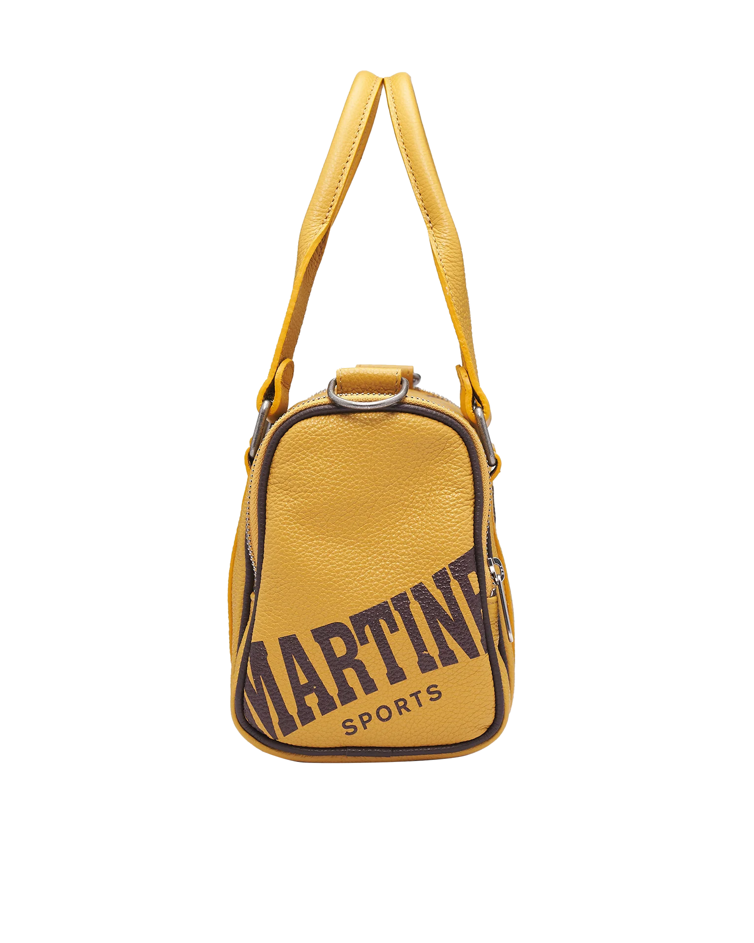 A MINIATURE SPORTS CROSS BODY BAG CRAFTED FROM PREMIUM SOFT LEATHER FEATURING SEASONAL MARTINE ROSE LOGO AND CONTRAST PIPING. WITH TWO OUTSIDE POCKETS WITH ZIP CLOSURES, A DETACHABLE AND ADJUSTABLE CROSS BODY STRAP AND A TOP HANDLE FOR HAND CARRYING.