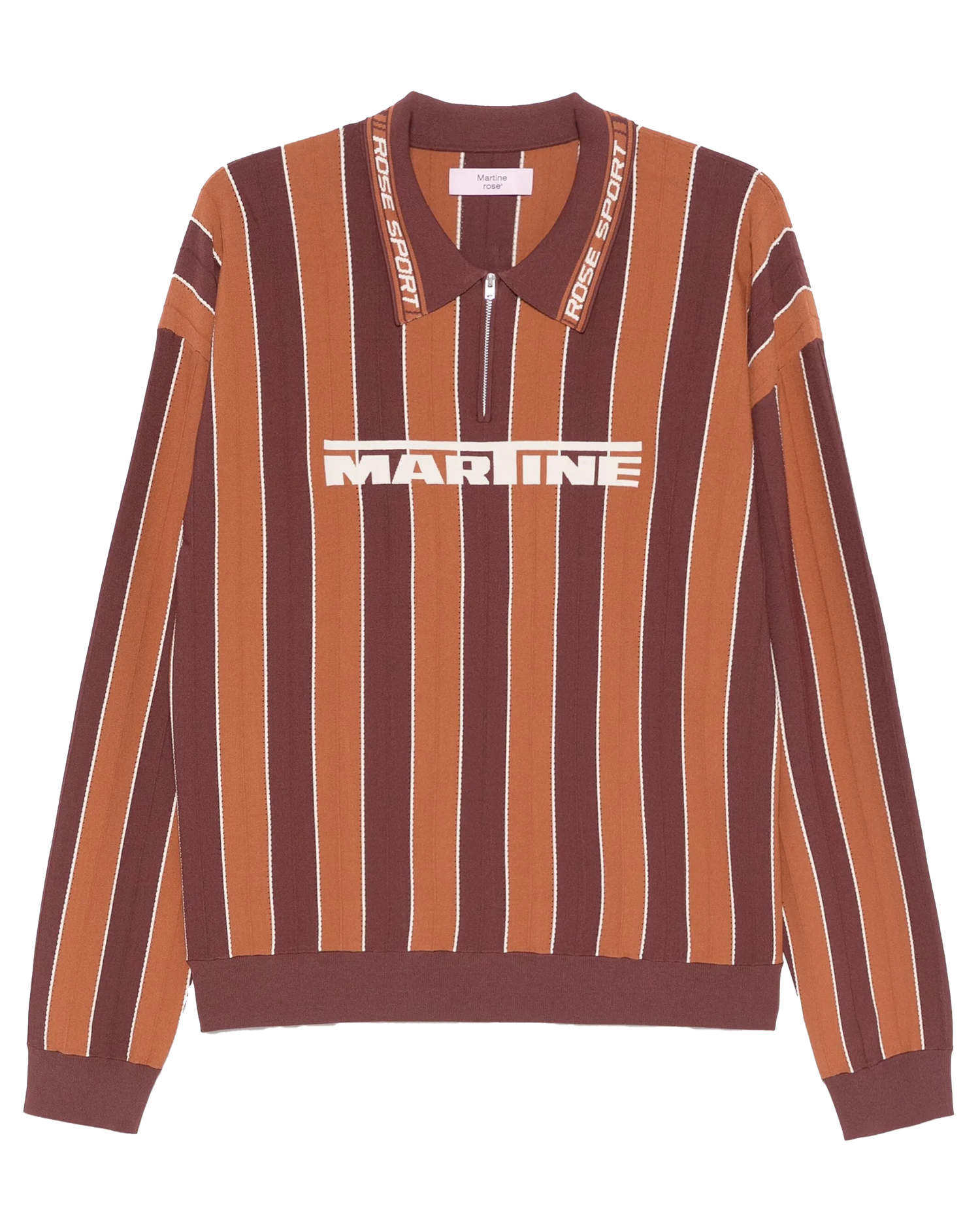 RELAXED FIT FINE TECHNICAL KNITTED POLO SHIRT WITH LONG SLEEVES, RIBBED CUFFS, A FOLD DOWN COLLAR AND 3/4 ZIP CLOSURE AT THE NECK. FEATURING SEASONAL BRANDED ARTWORK AT THE CHEST AND COLLAR.