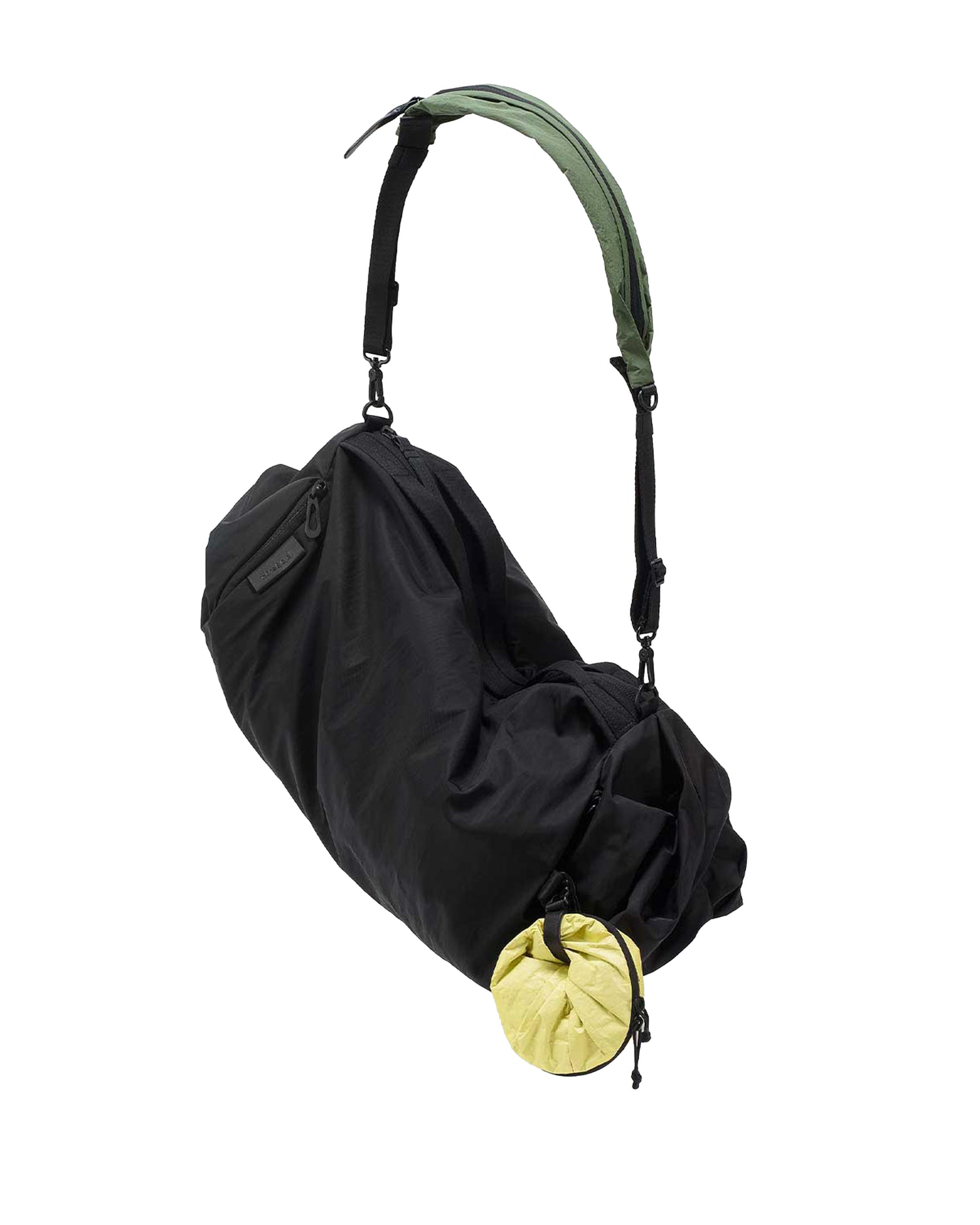 The OBED is a large duffle bag can be carried in the hand using the shorter straps. Constructed in lightweight Smooth Nylon it is a unique piece of travel gear for those looking to dazzle on the go.