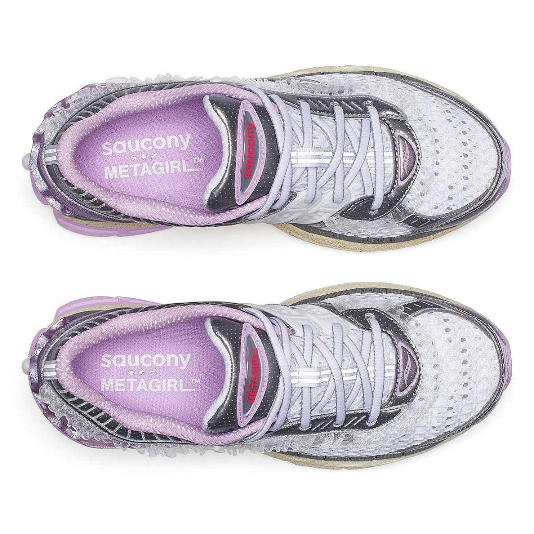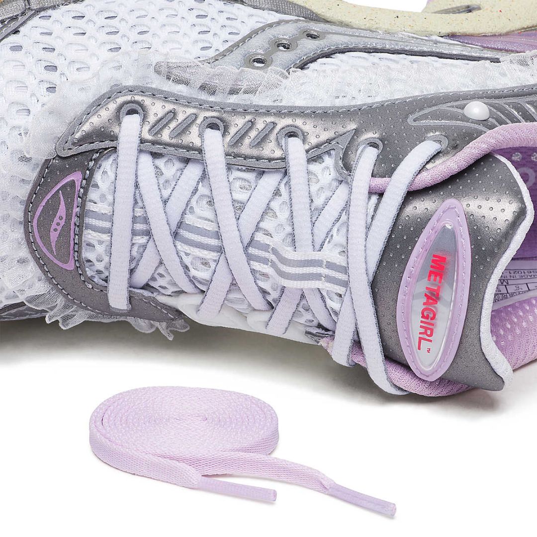 For her debut collaboration, METAGIRL dove into the Saucony archives to rework the ProGrid Paramount. The result: Daughter of the Moon—a bold revival of the early-2000s silhouette that fuses performance heritage with ethereal storytelling.