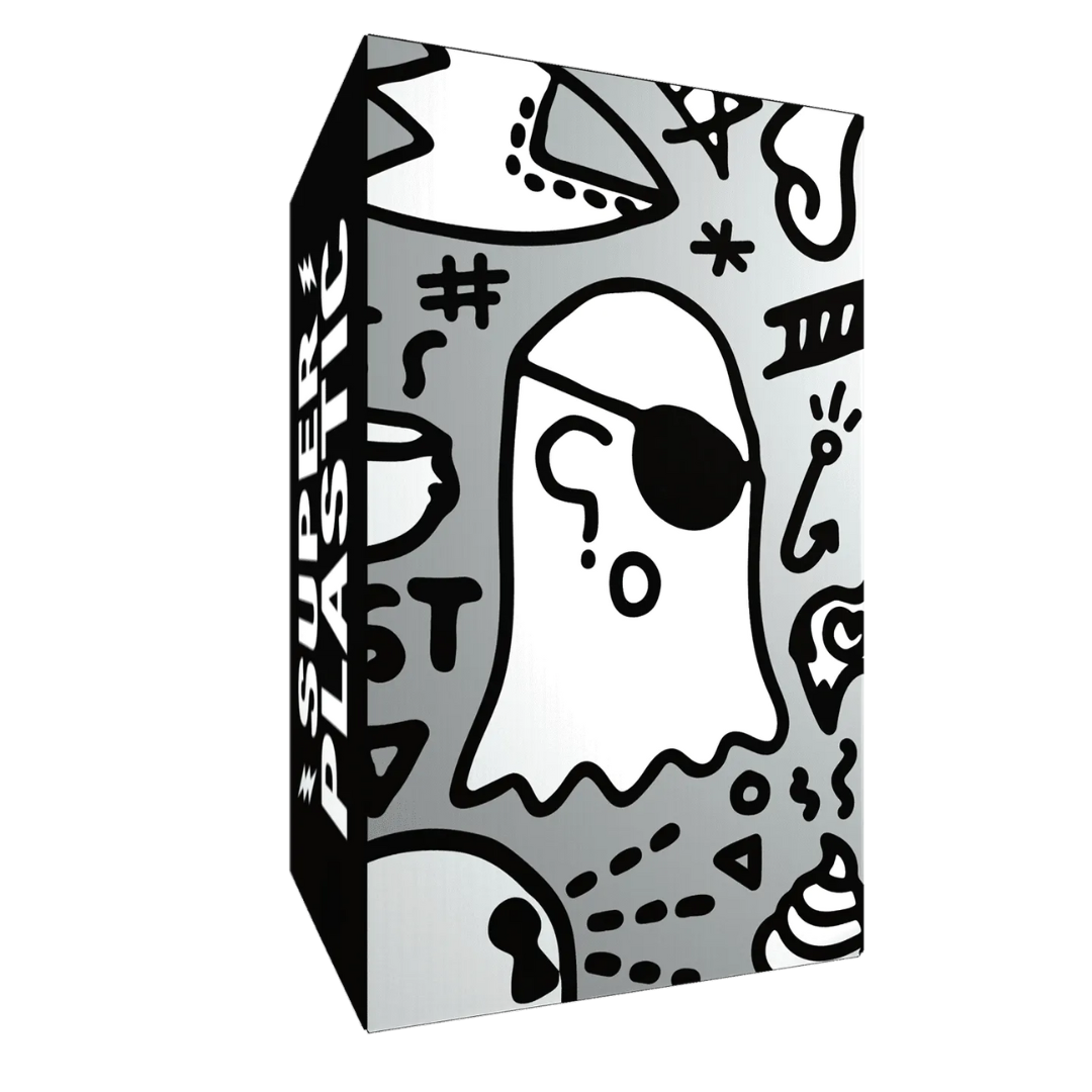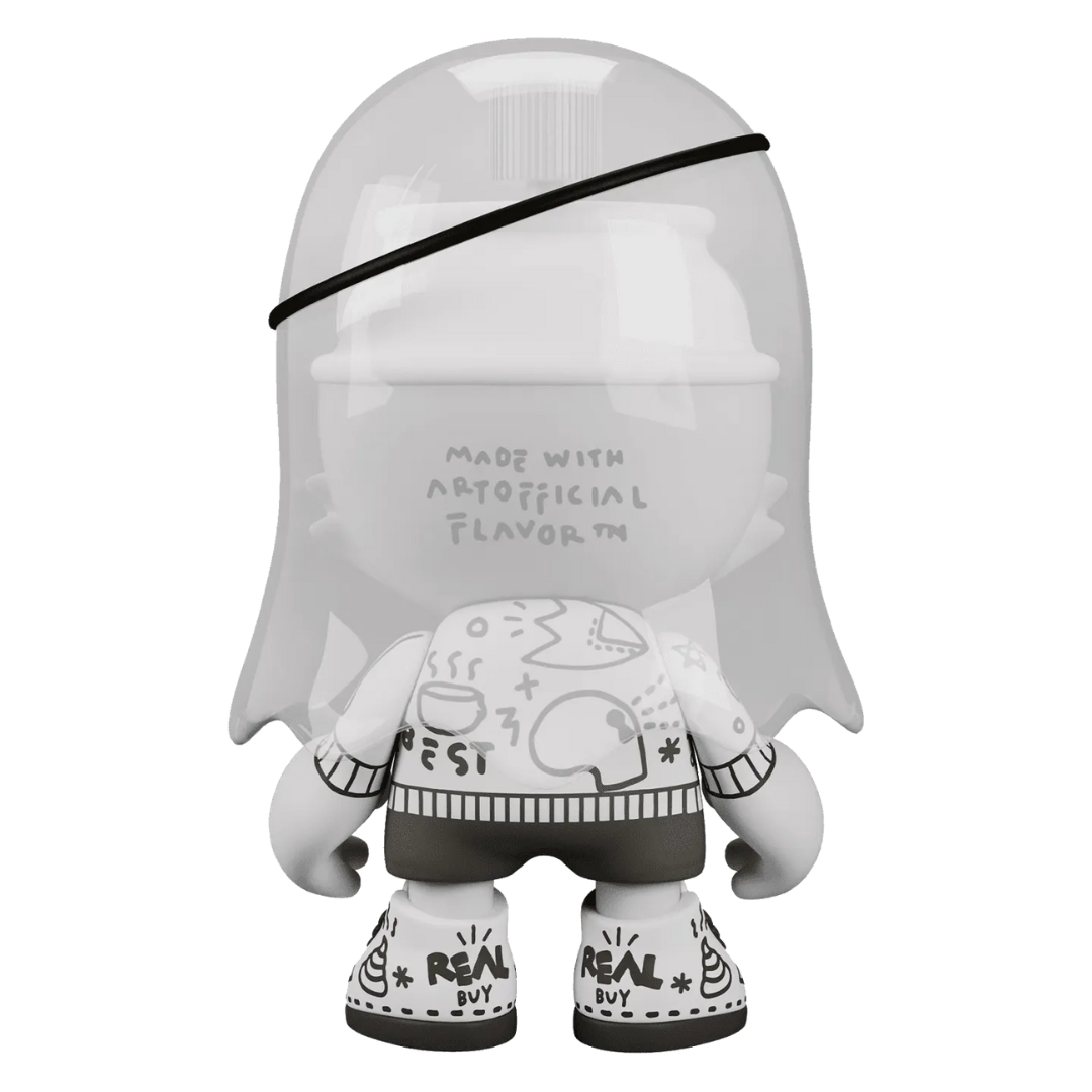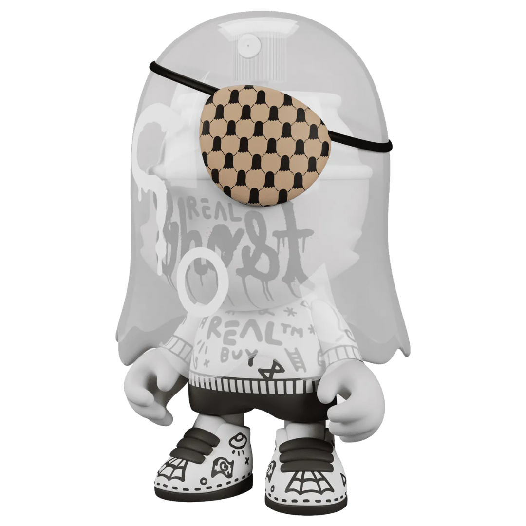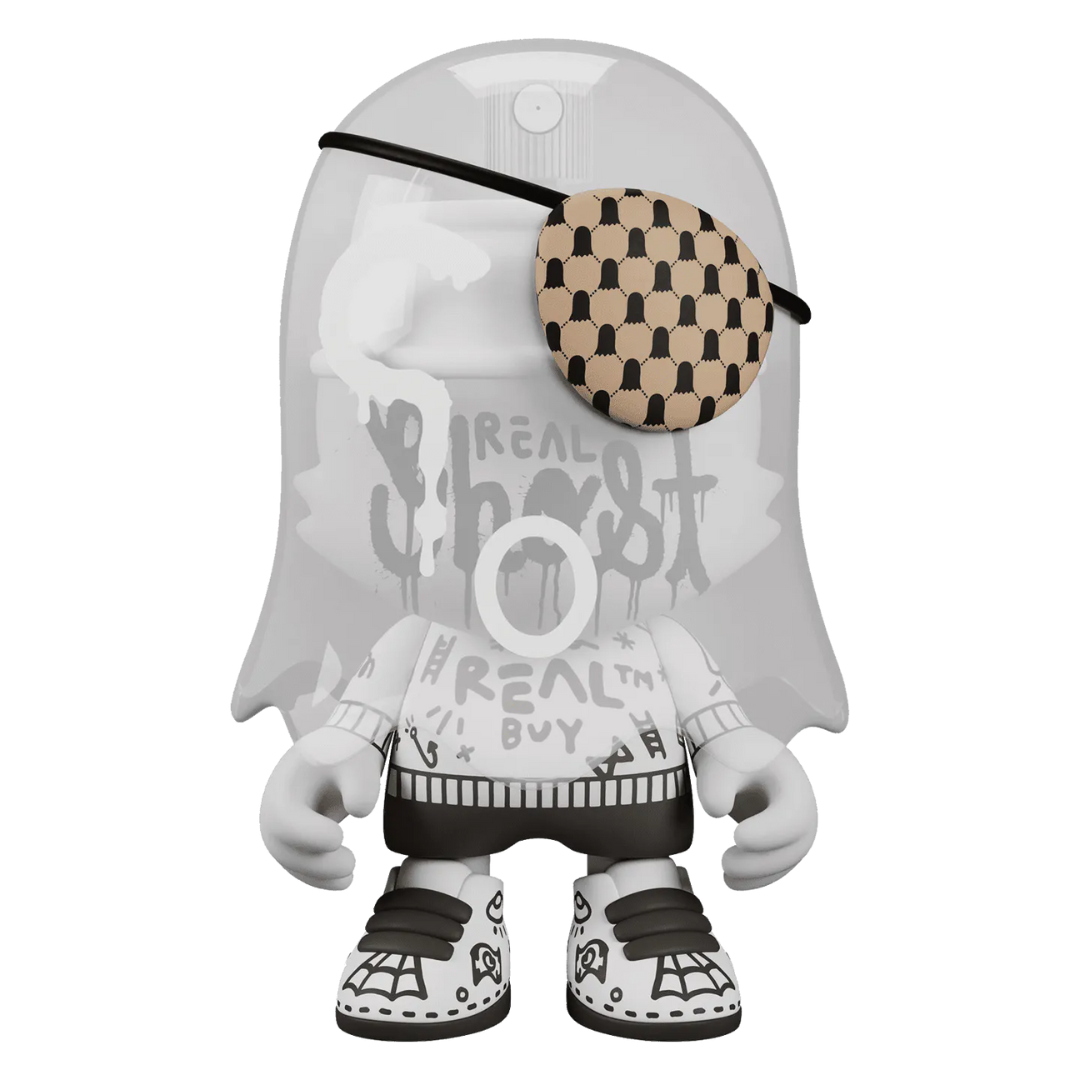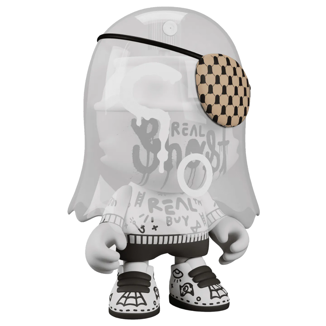 Superghost Grey is the final edition of Superplastic’s exclusive collaboration with legendary artist, snowboarder, musician & fashion designer Trevor Andrew. This limited-edition art toy comes flawlessly finished in Superplastic soft vinyl, featuring a removable semi-translucent ghost cloak, a chrome spray paint nozzle, and a luxury eye patch. Shake to activate the real rattle sound.