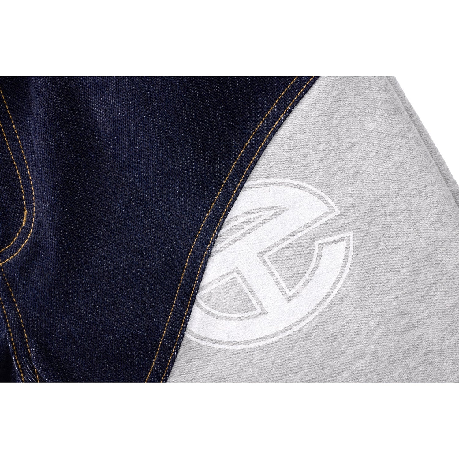 The Sweat Jean — A fusion of comfort and structure, featuring tailored fleece with a bold logo print and an adjustable drawstring waist. The design transitions smoothly at the hips into a relaxed raw denim silhouette with contrast stitching. Finished with deep side slit pockets and Telfar's signature debossed leather patch at the back.