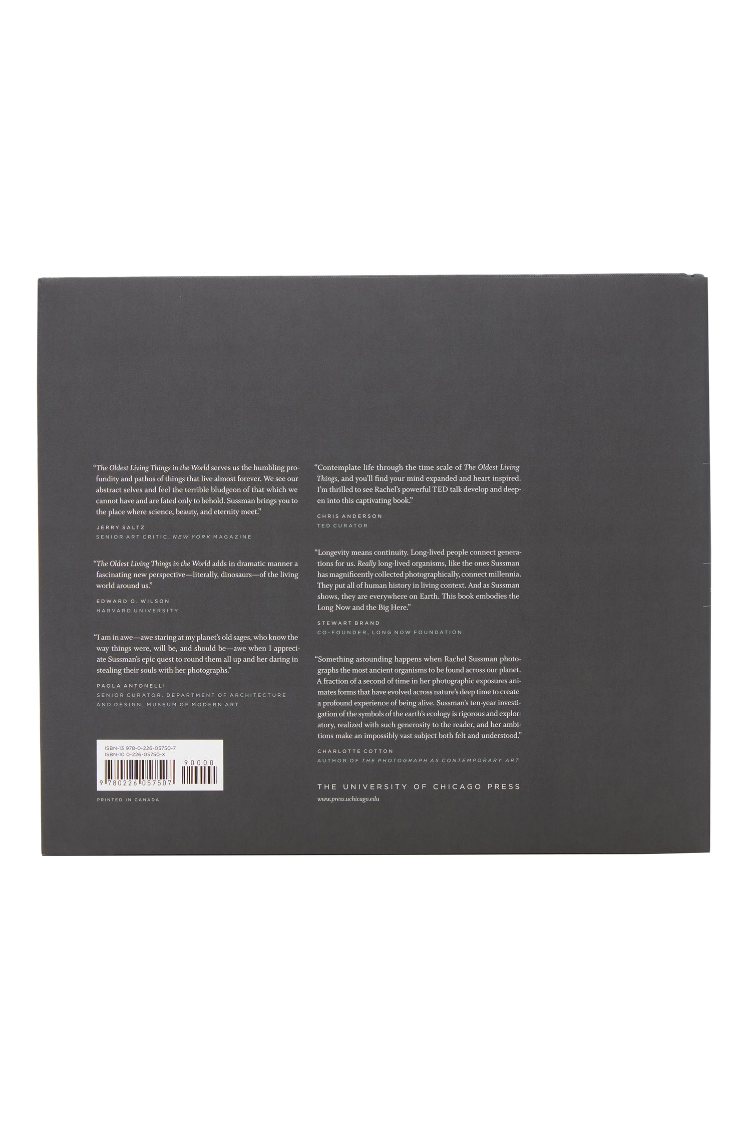 Her work is both timeless and timely, and spans disciplines, continents, and millennia. It is underscored by an innate environmentalism and driven by Sussman's relentless curiosity. She begins at "year zero," and looks back from there, photographing the past in the present. These ancient individuals live on every continent and range from Greenlandic lichens that grow only one centimeter a century, to unique desert shrubs in Africa and South America, a predatory fungus in Oregon, Caribbean brain coral, to an 80,000-year-old colony of aspen in Utah. Sussman journeyed to Antarctica to photograph 5,500-year-old moss; Australia for stromatolites, primeval organisms tied to the oxygenation of the planet and the beginnings of life on Earth; and to Tasmania to capture a 43,600-year-old self-propagating shrub that's the last individual of its kind. Her portraits reveal the living history of our planet--and what we stand to lose in the future. These ancient survivors have weathered millennia in some of the world's most extreme environments, yet climate change and human encroachment have put many of them in danger. Two of her subjects have already met with untimely deaths by human hands.
