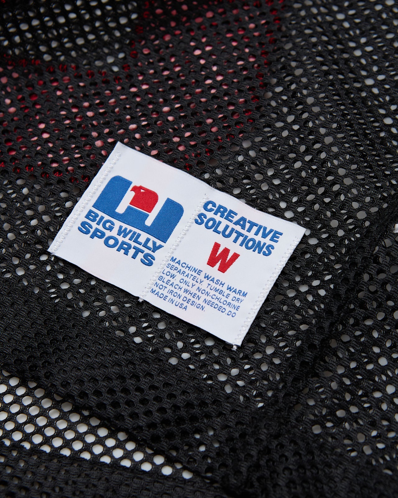 Bring bold, sporty energy to your wardrobe with the Willy Football Jersey. Designed with a cropped cut and oversized fit, it features dramatic shoulders for an athletic-inspired silhouette. The jersey showcases zig-zag stitched appliqué graphics and a ribbed V-neck collar, combining modern street style with classic football details. Crafted from dual-gauged mesh, this piece ensures both breathability and standout style.