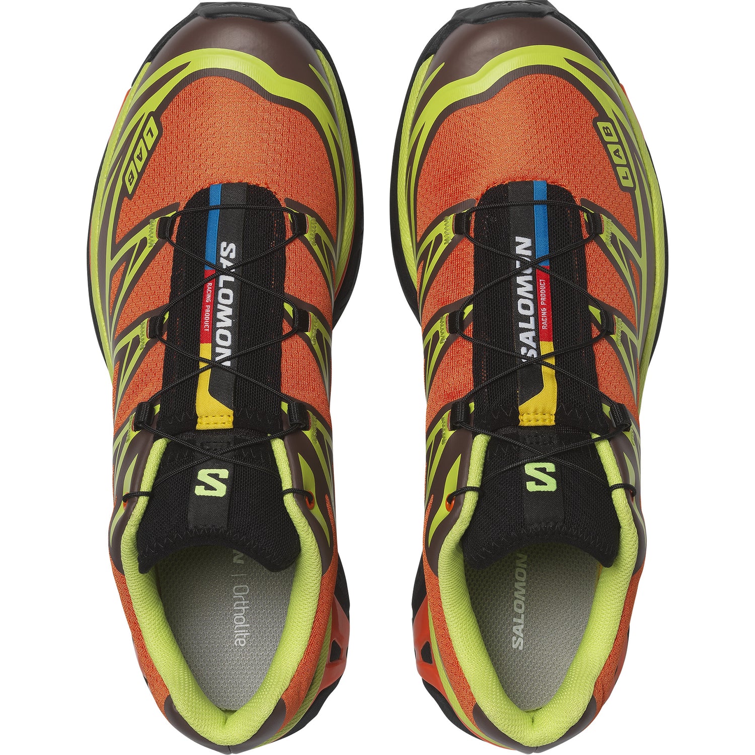 The Salomon XT-6 sneakers in Red Orange, Sharp Green, and Black continue the brand’s legacy of high-performance trail footwear. Originally launched in 2013 and favored by elite athletes for ultra-distance races, the XT-6 returns with updated colors and materials while maintaining its durability and cushioning.
